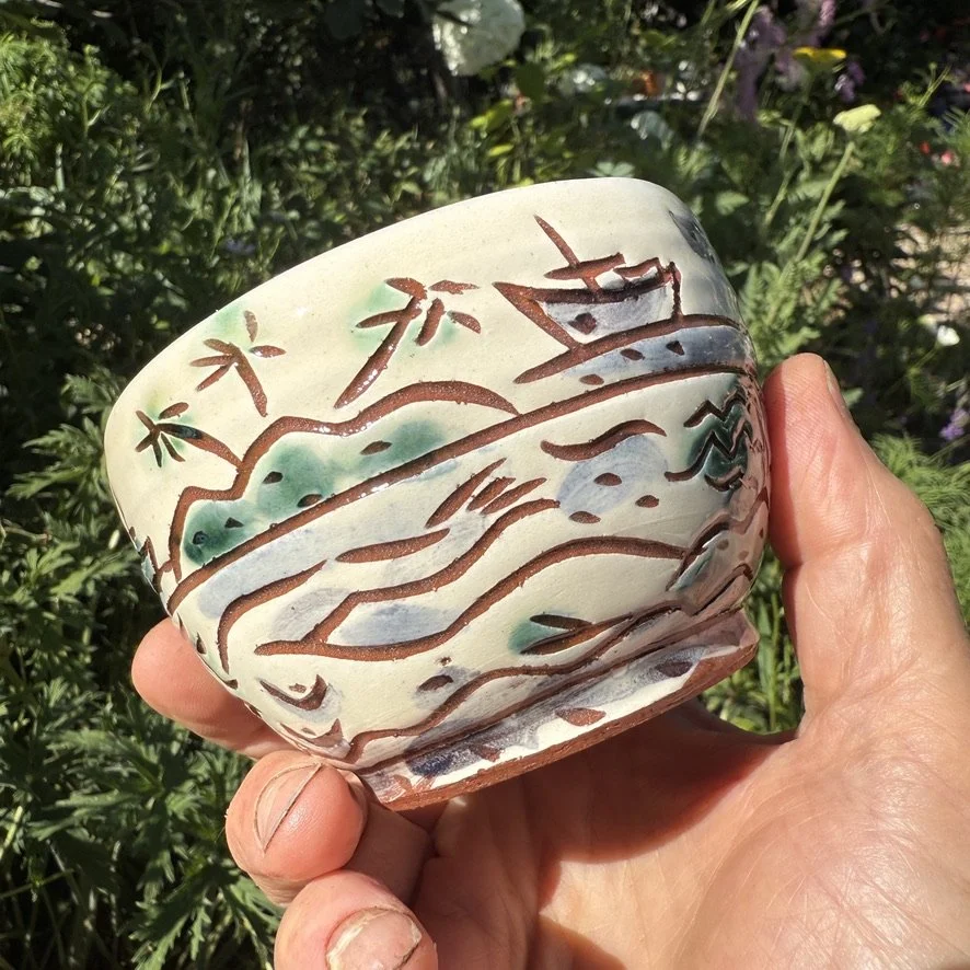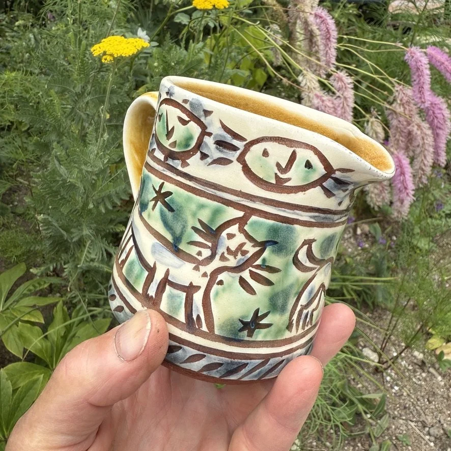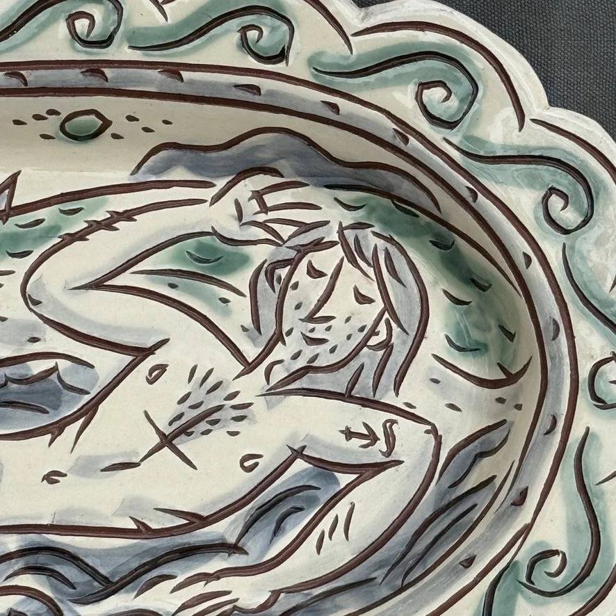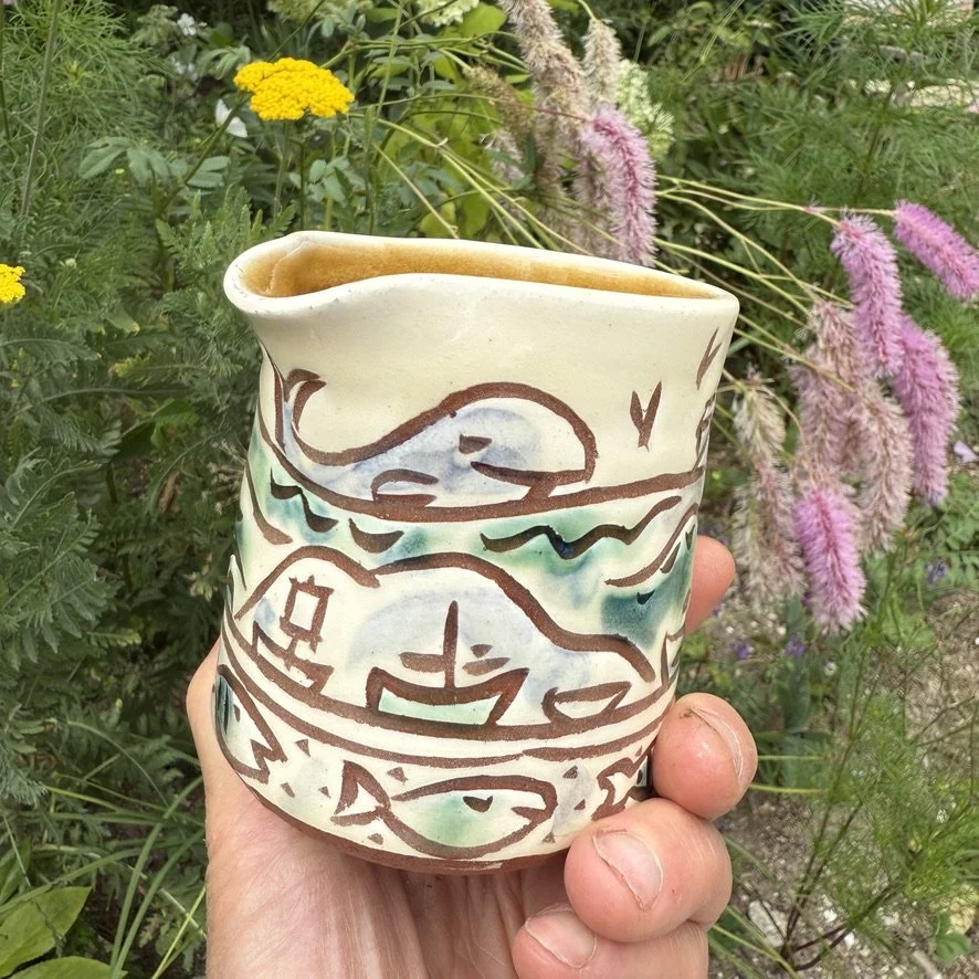 Categories: Select a Category Dishes & plates Bowls Mugs & beakers Jugs & pitchers Lidded pots Vases Tiles Platters Dishes & plates Bowls Mugs & beakers Jugs & pitchers Lidded pots Vases Tiles Platters pot3058 - Scalloped platter with swimmimng couple, scalloped edge. Hanging loop on reverse. £145.00 pot3049 Medium coffee mug with fishys border. Signature on base. Caramel glaze on handle and inside. £30.00 pot3048 Medium coffee mug with fishys border. Signature on base. Caramel glaze on handle and inside. £30.00 pot3040 - Milk jug with smiley sunfaces. Caramel coloured glaze onside and on handle. £40.00 pot3038 - Milk jug with whale and fish in a Norwegian bay. Caramel coloured glaze onside and on handle. £40.00 pot3037 - Milk jug with dog and cats and smiley suns. Caramel glaze inside and on handle. £40.00 pot3035 - Scalloped platter withfishes, hanging loop on back and shell border. £145.00 pot3034 - Scalloped platter with bird and leaf, leaves border and hanging loop on back. £145.00 pot3033 - Scalloped platter with bathing sailor and tropical island. £145.00 pot3031 Large rectangular tile with swimming guys £20.00 pot3027 Medium rectangular tile with bathing nightime lovers. £12.00 pot3024 Medium rectangular tile with bathing pals. £12.00 pot3023 Medium rectangular tile with kissing guys in the river. £12.00 pot3022 Medium rectangular tile with horny guys hugging on beach. £12.00 pot3010 Small rectangular tile with naked fellow. £5.00 pot3004 Ice cream bowl with three naked guys in the waves. £20.00 pot3003 Ice cream bowl withwomen swimmers and seascape. £20.00 pot2996 Slipware medium coffee mug with mermaid and seascape. Signature on base. Caramel glaze on handle and inside. £30.00 pot2982 Small rectangular tile with dog face. £5.00 pot2956 Salt dish with tropical beach and bather. £20.00 pot2944 - Cream jug withcuddling galpals. Caramel glaze inside.3 £12.00 pot2940 - Milk jug with fishy border and suns stripe. Caramel glaze inside. Green handle. £40.00 pot2937 Salt dish with mermaid with green tail. £20.00 Sold out pot2931 - Fruit thrown bowl with seascape border, white middle. Matching images on reverse. £180.00 pot2928 -Long pointed ovoid walled bonbon dish on legs. Scallopped top and scroll handles. Fishes. £90.00 pot2927 -Long pointed ovoid walled bonbon dish on legs. Scallopped top and scroll handles. Fellas on beach. £90.00 pot2924 -Lidded jar with seascape and gardening figures, fish on lid. £220.00 pot2923 -Lidded jar with seascape and swimming figures, birds on lid. £220.00 pot2922 - Wide round jug with bathers, seascape border and sun on lip. Caramel coloured handle and inside. £120.00 pot2921 -Lidded jar with seascape and swimming figures, fish on lid. £60.00 pot2920 - Large thrown bowl with gardeners in a seascape. Matching images on reverse. £320.00 pot2918 - Thrown bowl with mermaid and drunken sailor. Fishes on reverse, seascape in centre. £130.00 pot2917 - Thrown platter with nude couple and shell border. Figures on reverse. £95.00 pot2913 - Cream jug with smiley sunfaces and trees border. Caramel glaze inside. £12.00 pot2909 - Milk jug with naked conga, green background. Green coloured handle and inside. £40.00 pot2908 - Milk jug with folks, cat and 2 dogs. Caramel coloured handle and inside. £40.00 pot2902 - Flower jug with mermaids and fishes, seascape and trees border. Caramel coloured handle and inside. £160.00 pot2895 Slipware coffee mug with cavorting blokies. £25.00 pot2887 Slipware coffee mug with two bathing chaps in the waves with fishing boat. £25.00 pot2885 Cereal bowl with bathing fellas in seascape. Caramel coloured glaze inside. £35.00 pot2881 Cereal bowl with swimming sailors. Caramel coloured glaze inside. £35.00 pot2878 Cereal bowl with mermaid and sailor. Caramel coloured glaze inside. £35.00 pot2874 Cereal bowl with horny swimming chaps . Caramel coloured glaze inside. £35.00 pot2873 Cereal bowl with horny swimming chaps . Caramel coloured glaze inside. £35.00 pot2872 Cereal bowl with swimming chaps and fish border. Caramel coloured glaze inside. £35.00 pot2871 Cereal bowl with swimming chaps and seascape border. Caramel coloured glaze inside. £35.00 pot2868 Cereal bowl with sunface border. Caramel coloured glaze inside. £35.00 pot2866 Icecream bowl with green fishes, green background. Blue/green glaze decoration. £20.00 pot2864 Icecream bowl with abstract stripes. Blue/green glaze decoration. £20.00 pot2854 Slipware coffee mug with two bathing chaps in the waves with fish. £25.00 pot2850 Espresso mug with 3 fellas £15.00 pot2844- Cream jug with naked guys relaxing by the coast. Caramel glaze inside. £12.00 pot2842- Cream jug with skinnydipping guys in the waves. Caramel glaze inside. £12.00 pot2840 - Jar with Ionian landscape and relaxing nude sunbathers. Caramel yellow handles. £160.00 pot2841 - Flower jug with Ionian landscape and nude sunbathers. £160.00 pot2839 - Flower jug with mermaids and fishes. £160.00 pot2834 - Scalloped sweetie dish with relaxing nudes. £30.00 pot2822 Espresso mug with birdies. £15.00 pot2819 Espresso mug with sunfaces and stripes £15.00 pot2817 Espresso mug with nudie folk in the surf . £15.00 pot2811 Espresso mug with sunfaces and stripey borders £15.00 pot2808 Espresso mug with Fishes £15.00 pot2806 Espresso mug with Seascape £15.00 pot2805 Espresso mug with Seascape and swimmers £15.00 pot2809 Espresso mug with swimming couple. £15.00 pot2805 Espresso mug with Ionian seascape decoration. £15.00 pot2793 - Lidded Jam pot with fish design. £40.00 pot2792 - Lidded Jam pot with mermaid design. £45.00 pot2791 - Lidded Jam pot with decoration of birds. £45.00 pot2790 - Jam pot with decoration of diverse nudie folk. Swimmimng man and woman on lid. £45.00 pot2789 - Scalloped platter with honey glaze and sleeping fish decoration Grey/green oxide colour. Loop on back for wall hanging. £145.00 pot2784 - Scalloped platter with honey glaze and bird decorat